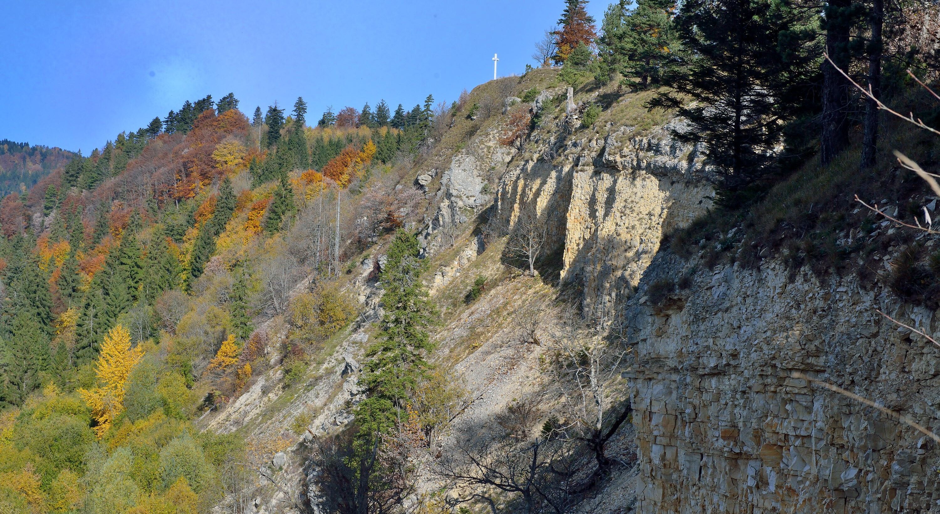 Wer aus Richtung Denkingen den steilen Aufstieg nach Gosheim befährt, sieht sie schon von Weitem: die markante, helle Klippe am Albtrauf mit dem weißen Kreuz. Hier wartet eine einmalige Aussicht aufs Unterland auf Sie.
