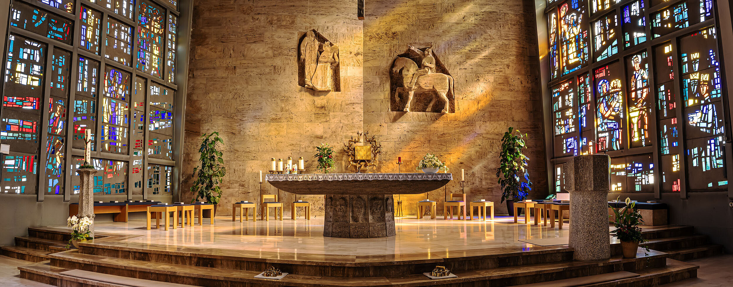 Heute sind sie Ausdruck der Freude am Glauben, und diese sichtbar gemachte Begeisterung fällt vor allem bei Sonnenschein ins Auge. Lassen Sie sich diesen prächtigen Anblick auf keinen Fall entgehen und betreten Sie diese durchaus besondere Kirche im Herzen Gosheims!