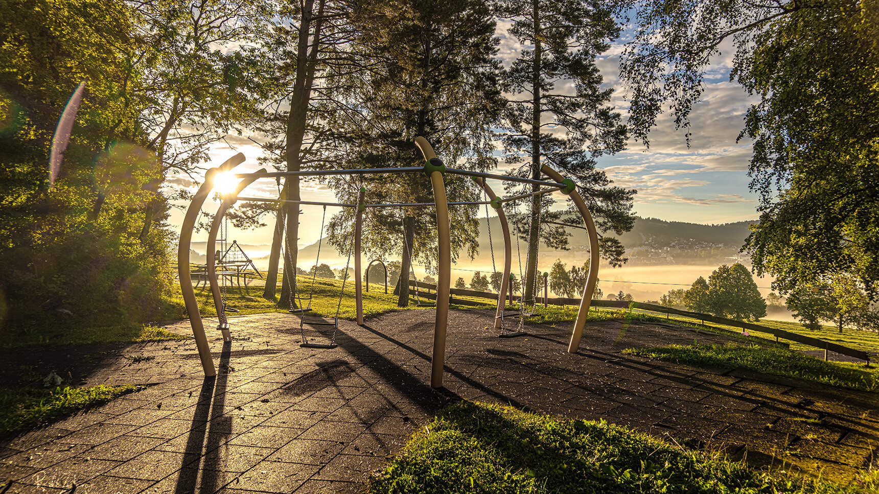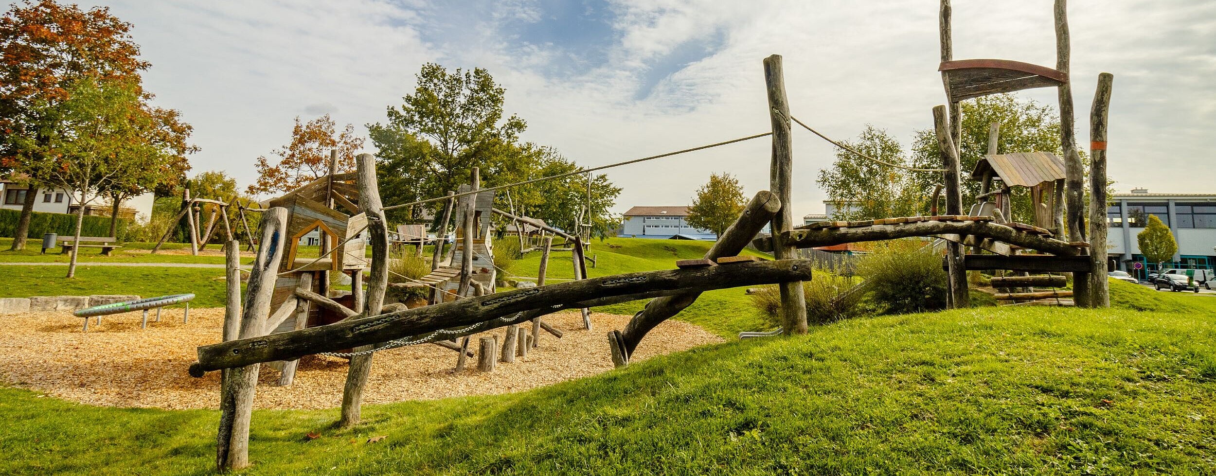 Nahe beim Jurabad in der angrenzenden Grünanlage mitten in Gosheim befindet sich ein Spielplatz, der mit herrliche knorrigen Holz-Spielgeräten aufwartet: Klettern und Verstecken, Rutschen, Wippen und natürlich Schaukeln sind hier angesagt.