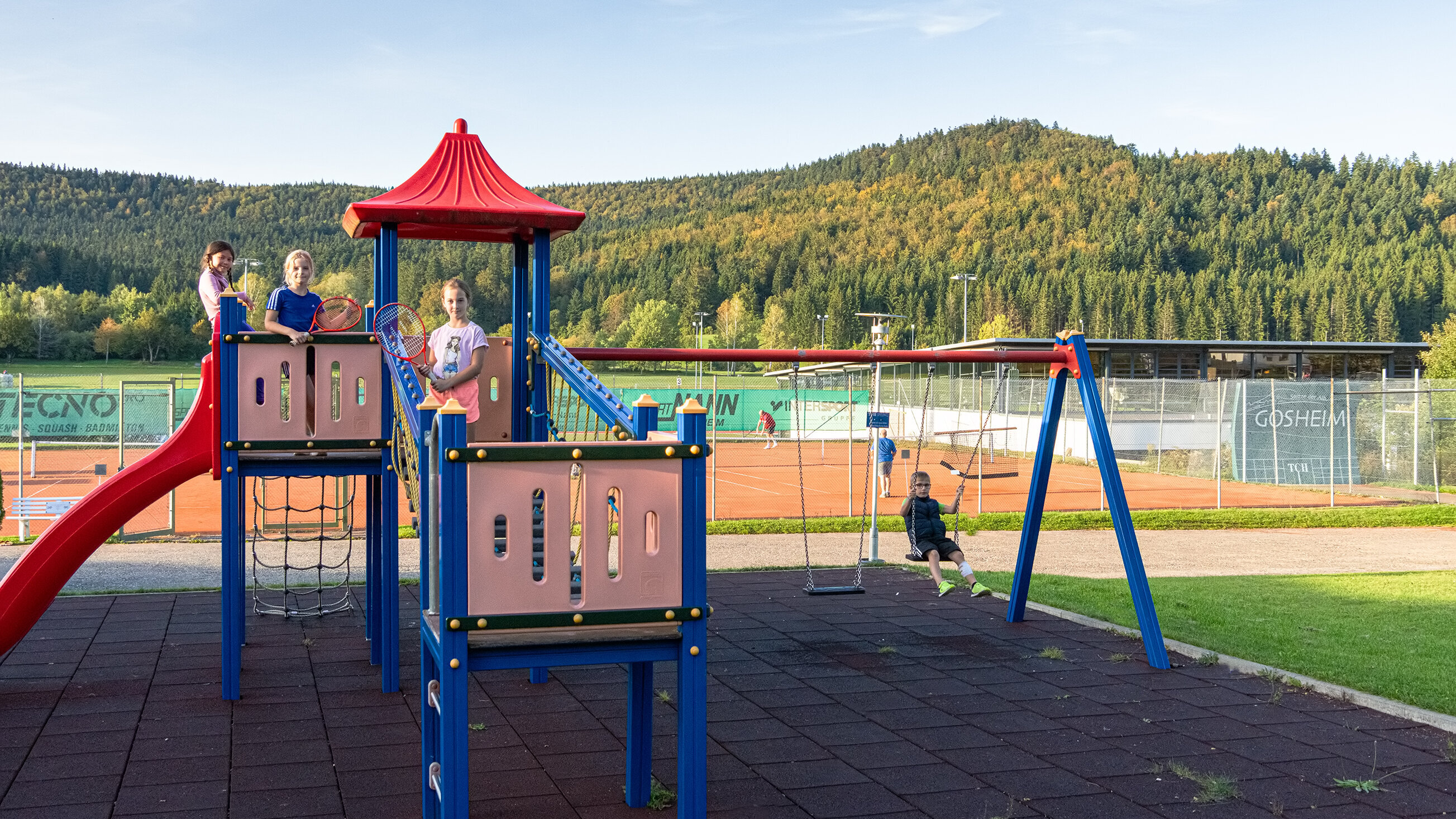 Klein, aber fein ist der Spielplatz direkt neben dem Gebäude des Tennisclubs: Zum Klettern und Rutschen lädt die kleine Anlage die Kinder ein, die keine Lust haben, beim Tennis auf den nahen Sandplätzen oder in der Tennishalle zuzusehen. Und wer selbst mal ein paar Bälle mit dem Tennisschläger bearbeiten will, kann sich an der Ballwand direkt beim Spielplatz üben: Der benachbarte Tennisclub leiht auf Anfrage gern Schläger und Ball zum Probieren aus.